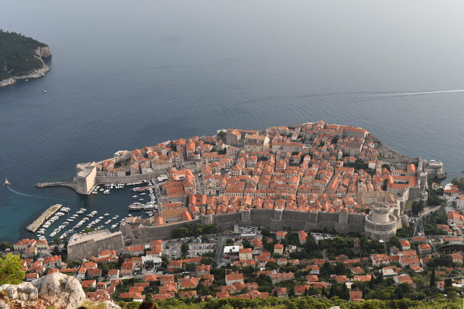Dubrovnik (hus vid hamnen/kyrkan), Kroatien